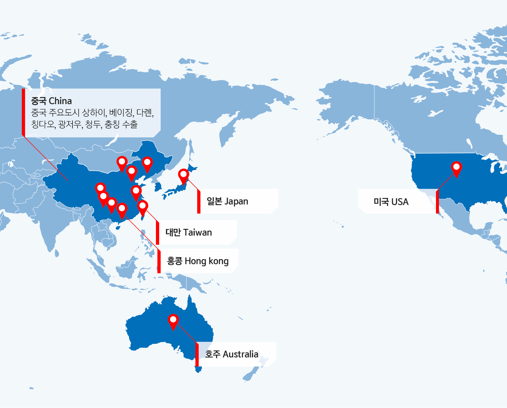 청하식품은 설립 초기 일본, 러시아 수출을 시작으로 해외시장 개척의 길을 끊임없이 진행하였습니다. 그 결과 <중국 유가공 수출 공장등록>, <중국 수산물 수출 공장등록>으로 중국 진출의 발판을 마련했으며 중국 Yili Group (중국 유제품 대표업체)과 MOU 체결(2016년) 등 중국 전역과 미주시장, 홍콩 등 글로벌 시장으로 넓혀가고 있습니다.