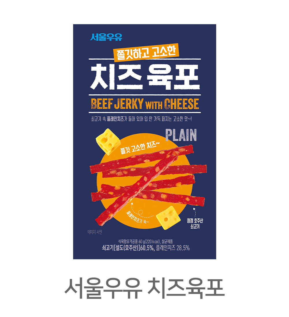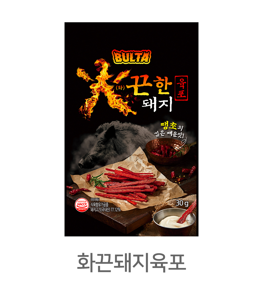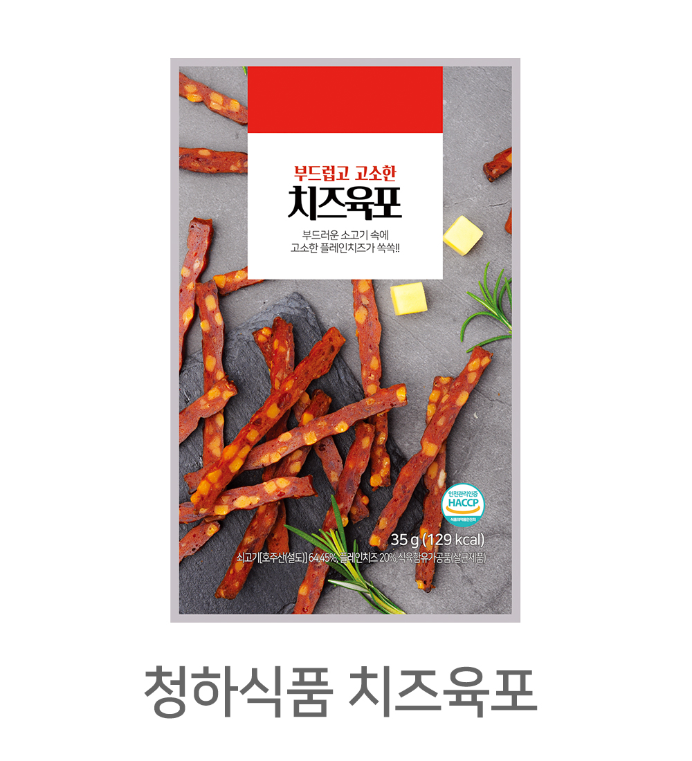 소고기, 돼지고기, 닭고기 등의 원재료로 다양한 맛과 형태의 육포 개발이 가능합니다.